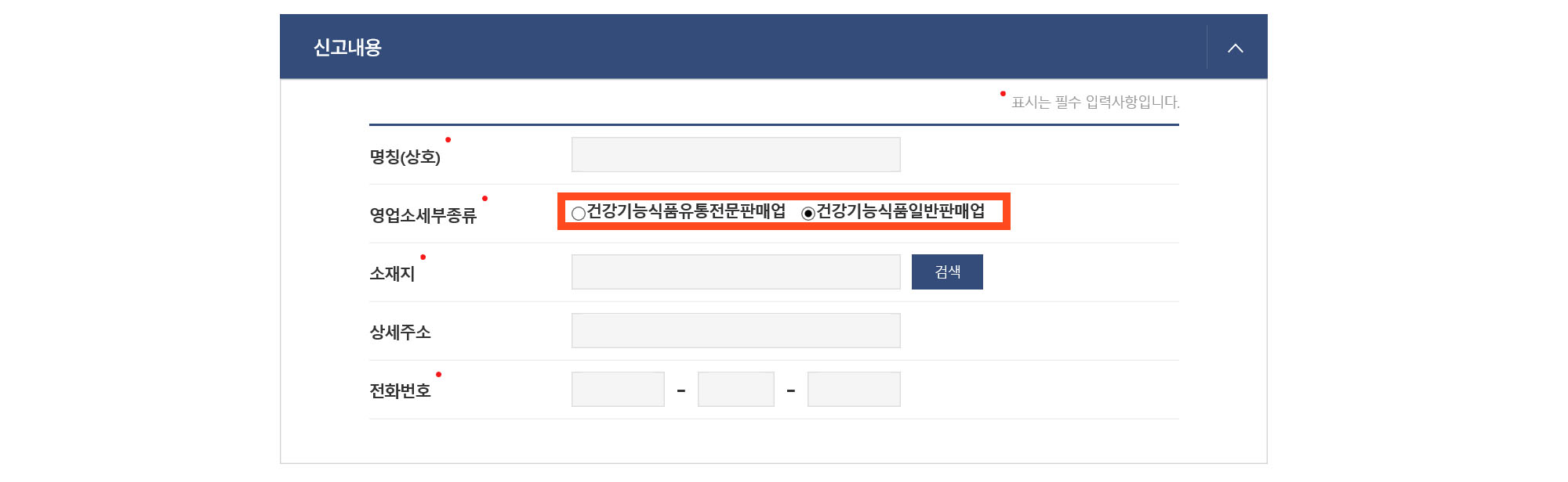신고 내역에서는 '건강기능식품 일반판매업'을 체크한다.