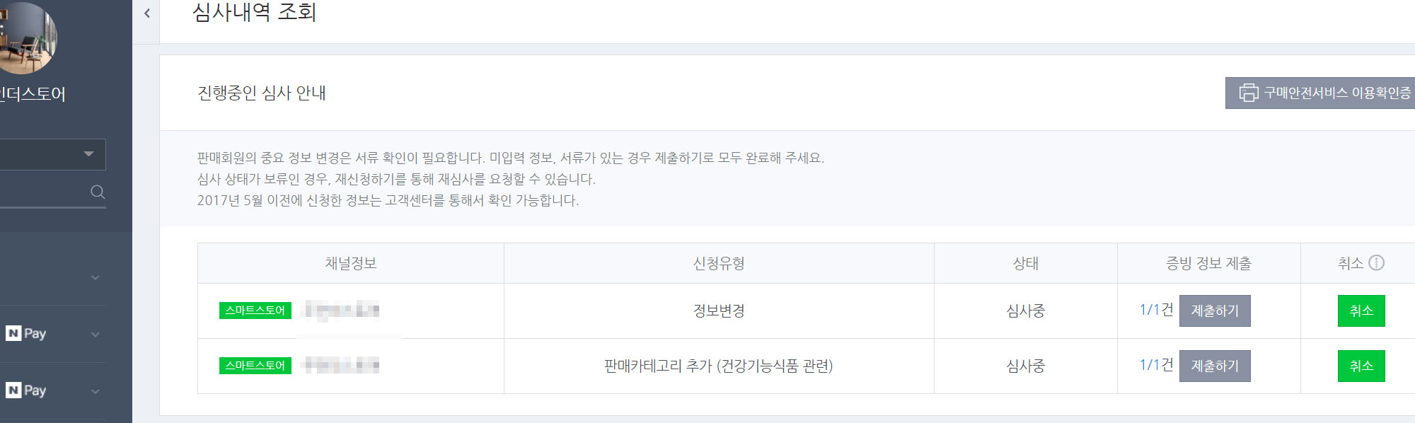 스마트 스토어 센터를 들어간 후, 판매자 정보의 상품 판매권한 신청을 한다.