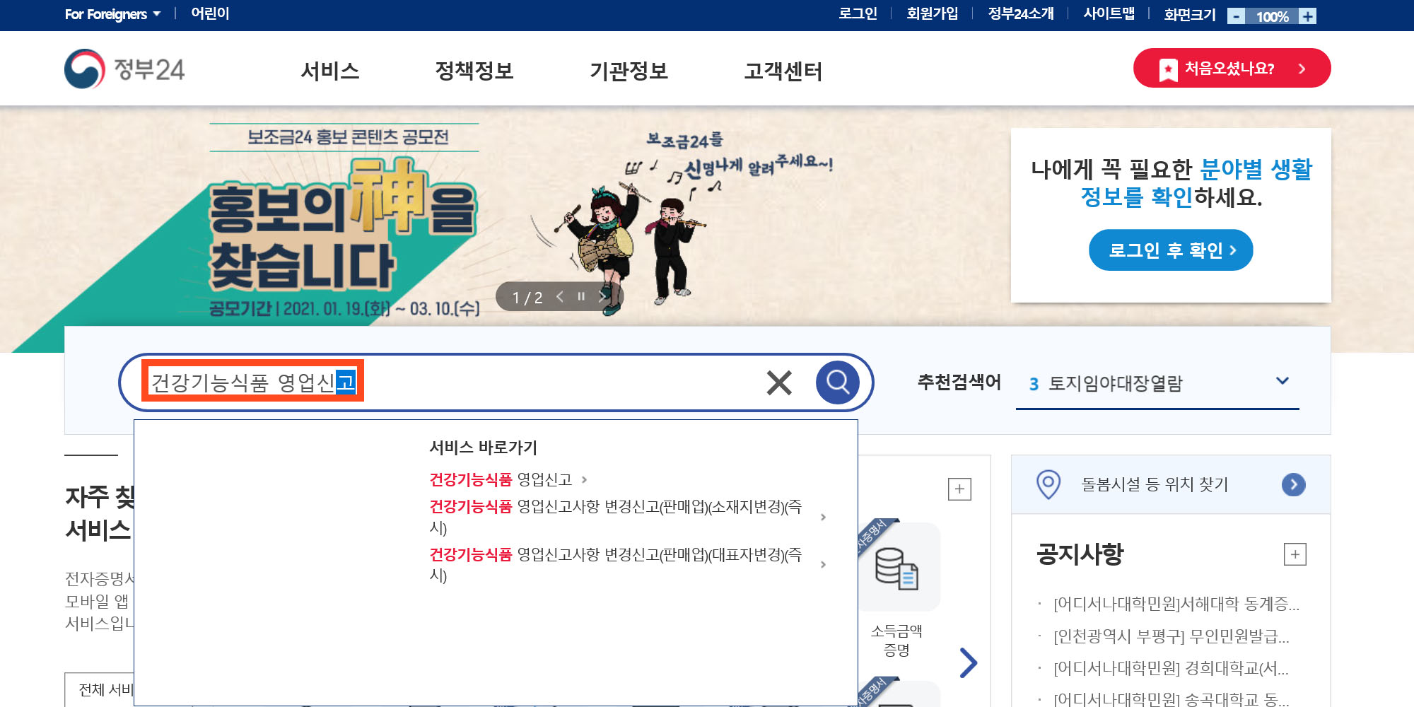 2. 정부 24에 건강기능식품 영업신고 하기
