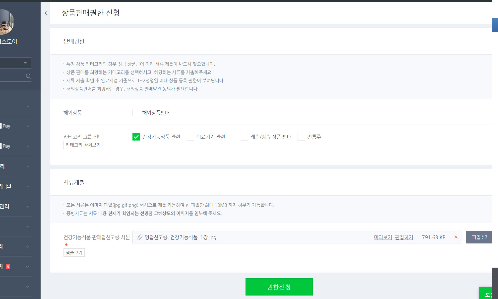 이제부터 자신의 스마트 스토어에 건강기능식품을 판매할 수 있는 준비를 해보자.