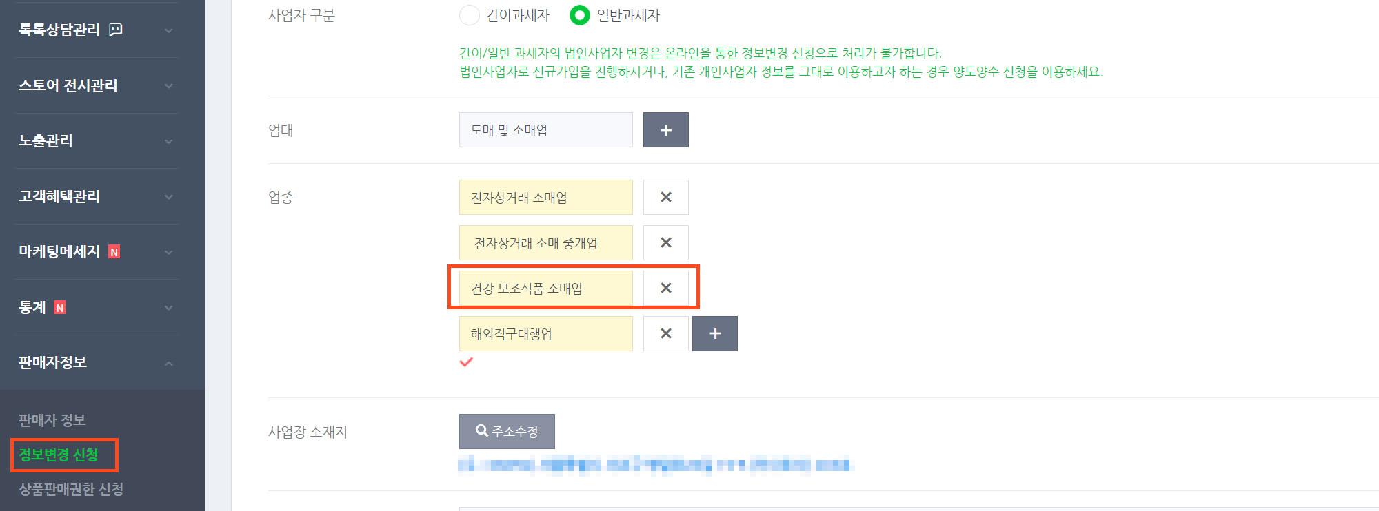 그리고 사업자 등록증이 수정되었다면, 스마트 스토어에서 정보 변경 신청을 해준다.