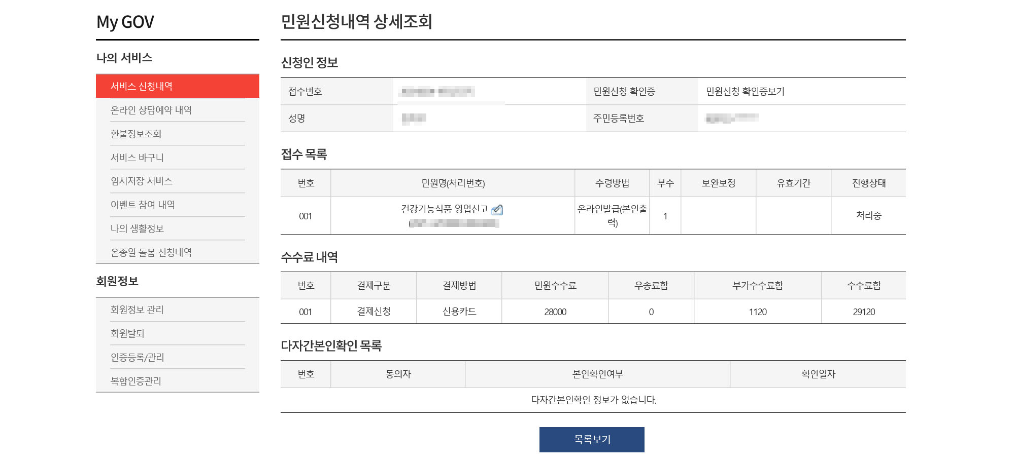 그리고 결제 29120원을 하면 (신용카드 가능) 아래와 같이 처리 중으로 진행상태가 나온다.