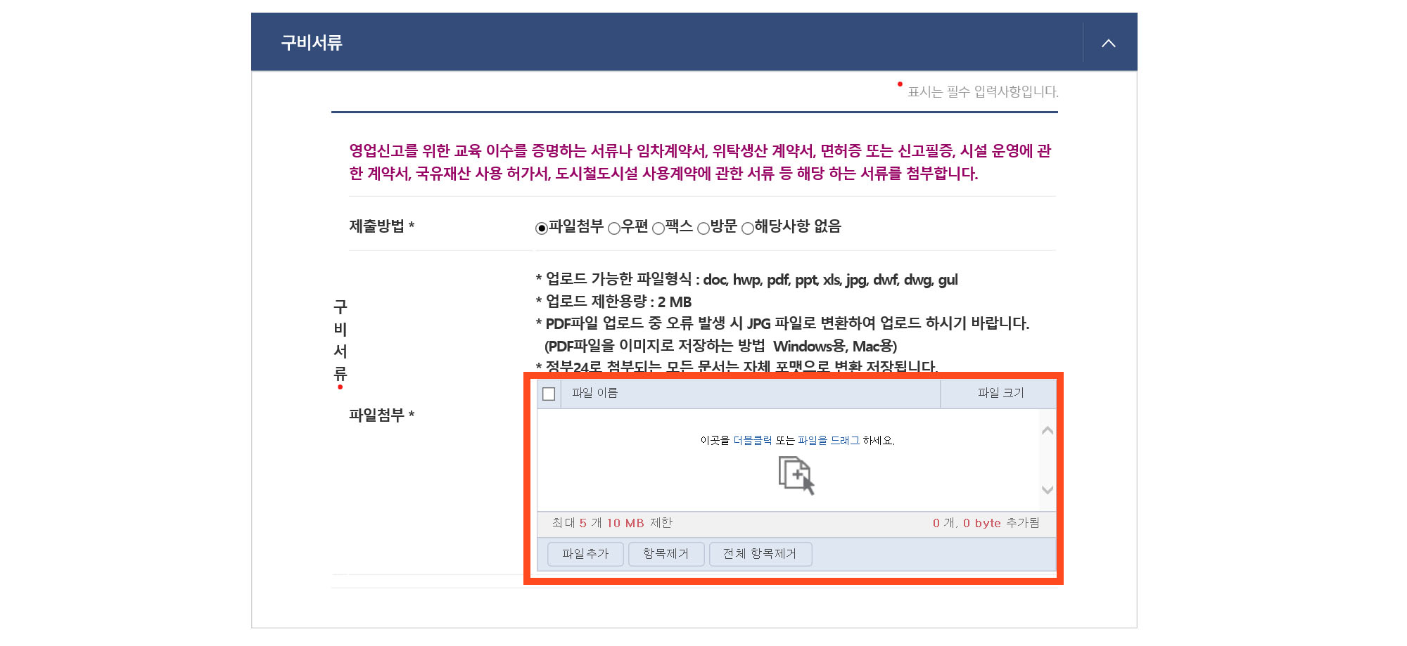그 후, 첨부 서류에 건강식품 영업신고증을 첨부한다. (영업신고증을 정부 24에서 출력하였으면, 그 파일을 스캔받아 놓으면 편리하다.)