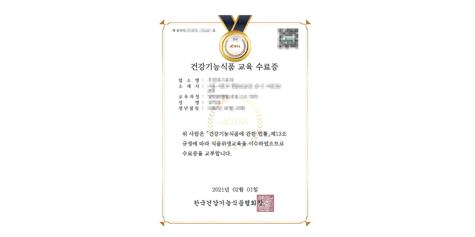 그리고, 이전에 건강기능식품 교육센터에서 다운로드한 수료증을 아래에 첨부한다.