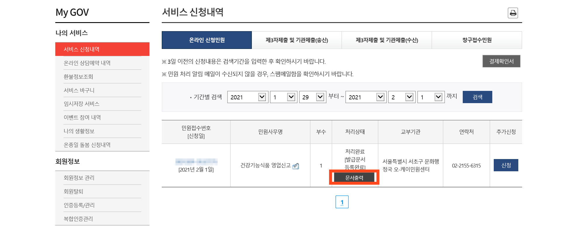 서초구 같은 경우는 겨의 2시간 만에 처리 완료가 되고 문자로 알림이 왔다.