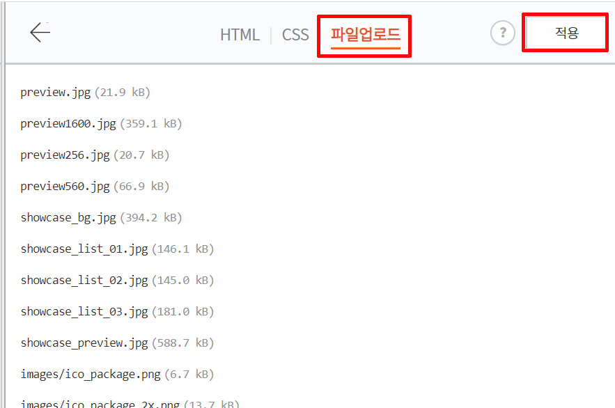 이렇게 만든 이미지를 파일 업로드에 추가하고 적용한다. 파일명은 images/~부터 jpg까지 적어놓는다.