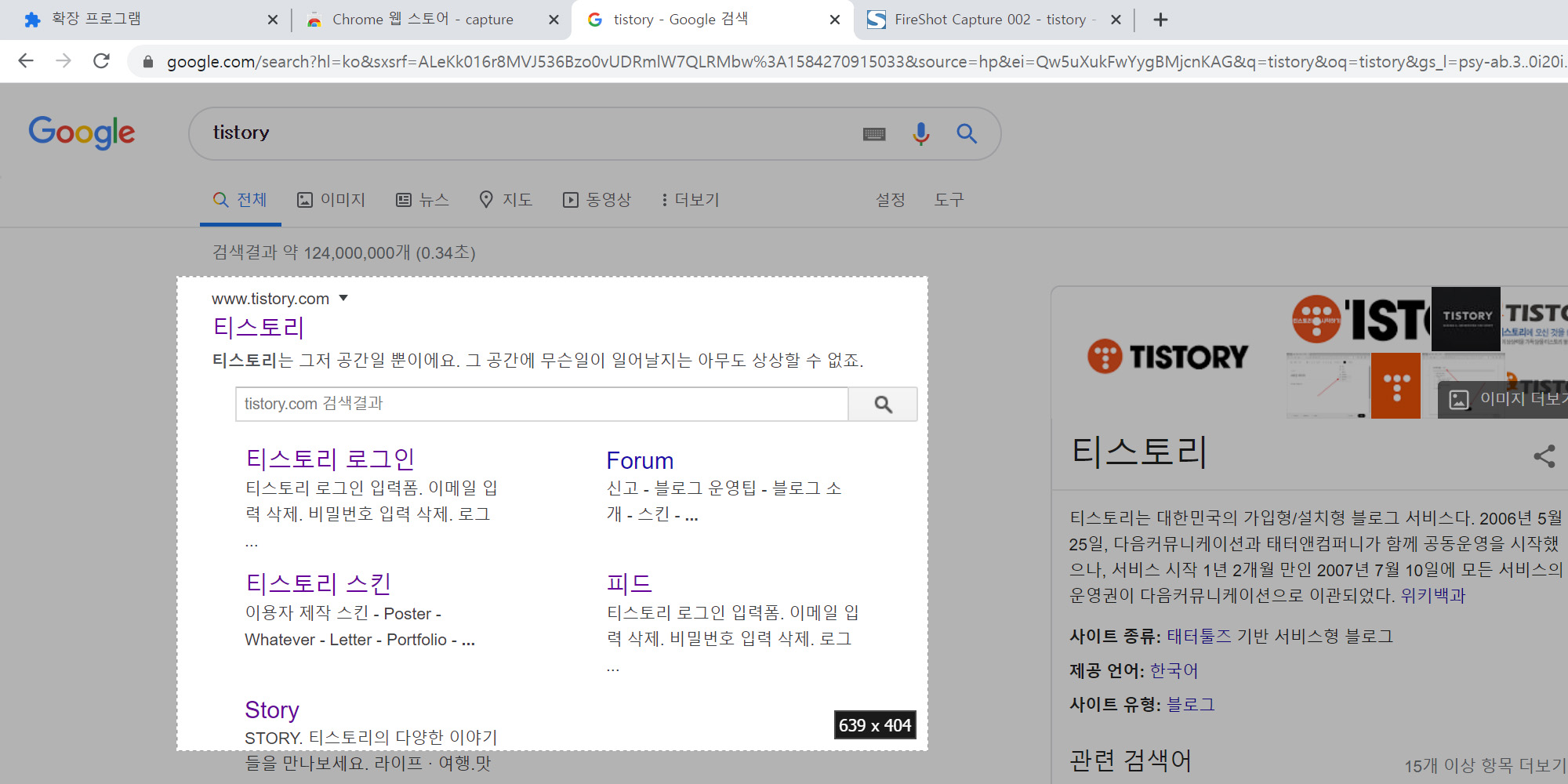 그리고 검색에 'capture' 를 검색한다. 그러면 여러 확장 프로그램이 나오는데, 그중의 '캡춰(전체 웹 스크롤) - FireShot'을 Chrime에 추가한다. (여기서는, 이미 추가가 되어 있어서 '평가하기'로 나와 있다.)